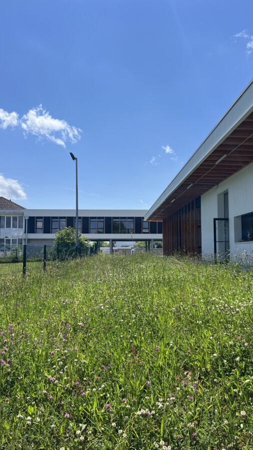 Deux volumes bâtis s’implantent le long de la route de l’Arcolan...