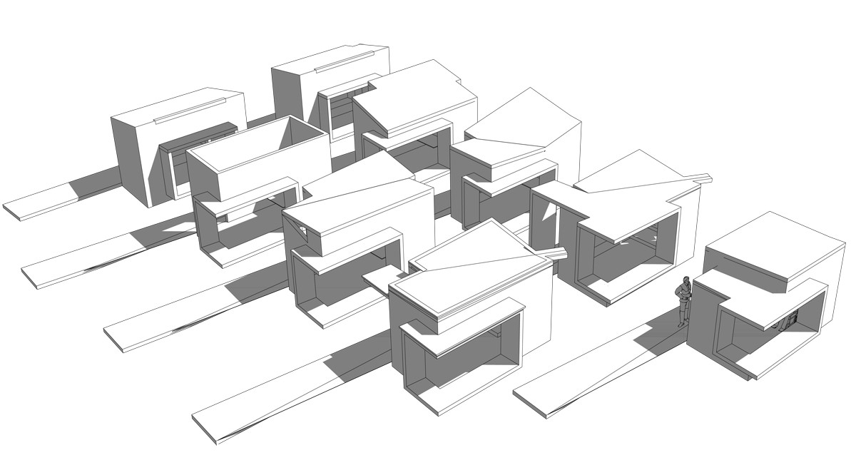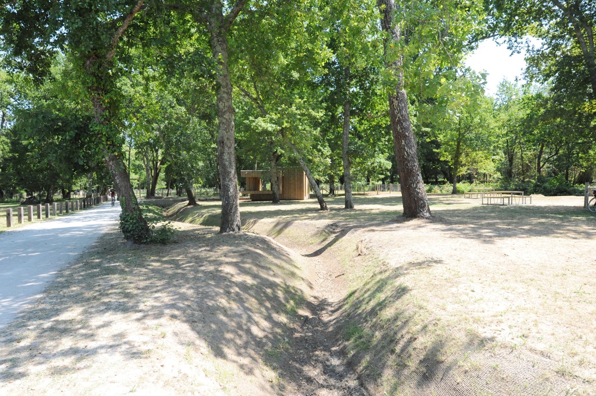 Deux volumes bâtis s’implantent le long de la route de l’Arcolan...