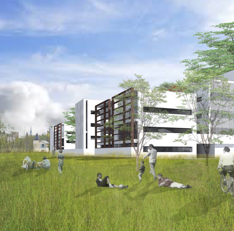 Ce projet d’aménagement d’un site de friche industrielle en bordure du parc naturel urbain du Gave de Pau reproduit le gabarit d’ilots de bâtiments d’habitation du centre-ville de Pau, participant à la densification de territoires peri-urbains par l’implantation de maisons individuelles sur des parcelles de petites dimensions.