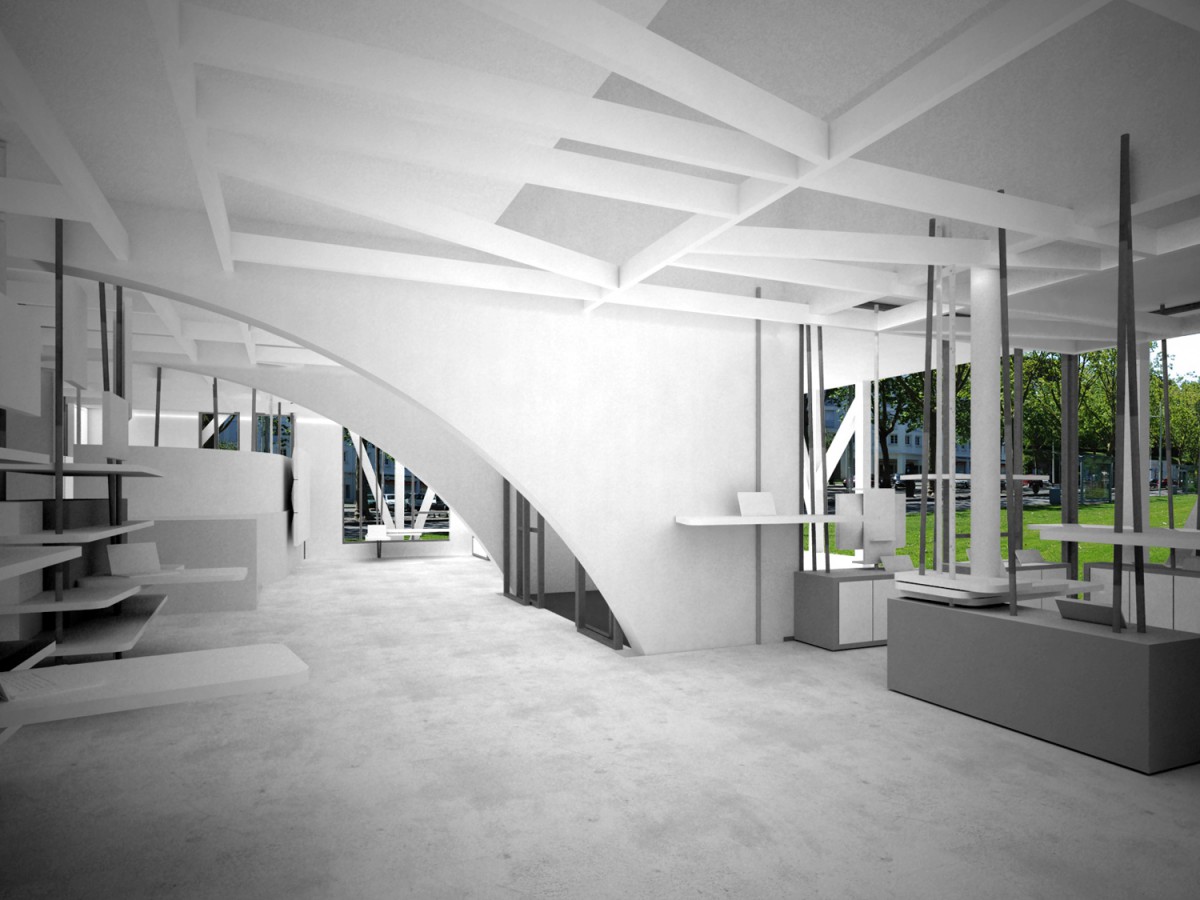 Ce projet est porteur de la révolution numérique qui modifie notre pratique des espaces. Il doit permettre d’installer une scénographie de communication et d’information. Il est porteur de ses évolutions à venir. Il s’agit aujourd’hui d’aménager des espaces modulables, qui intègrent les possibilités d’évolution d’usage. Pour cela le projet va créer un système de porosité matérielle qui intègre la présence cinétique du public.