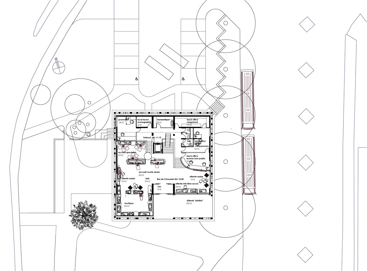 Le projet d’extension de l’office du Tourisme va permettre de réorganiser la distribution des espaces, autour de l’accès unique du public au hall d’information. Il corrige les dysfonctionnement en termes de confort thermique et visuel par le travail architectural sur l’enveloppe du bâtiment, l’organisation des espaces et la reprise des réseaux techniques.